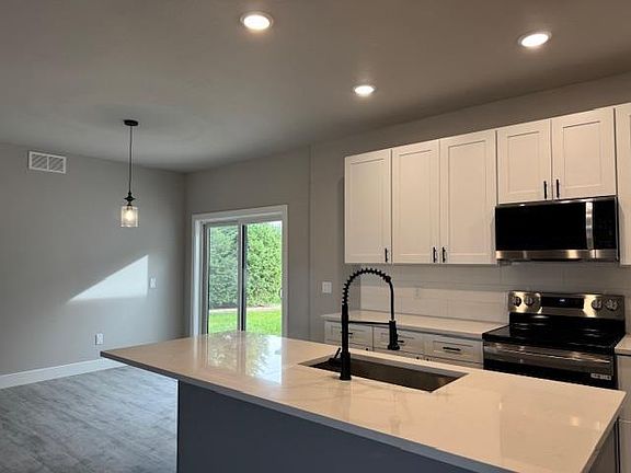 Zero lot line Condo. NO CONDO FEES!!! Stunning new construction, zero entry garage duplex condo. LVP flooring throughout kitchen, living space and primary bedroom. Custom tiled shower in primary. Solid doors, quartz counters in kitchen and baths. Main floor laundry. Large vanities in bathrooms. Buyer to verify measurements as desired.