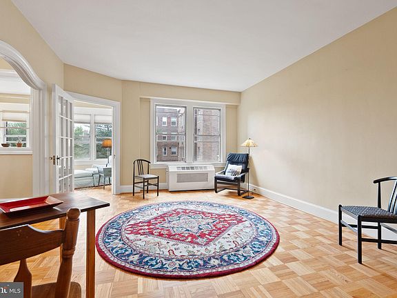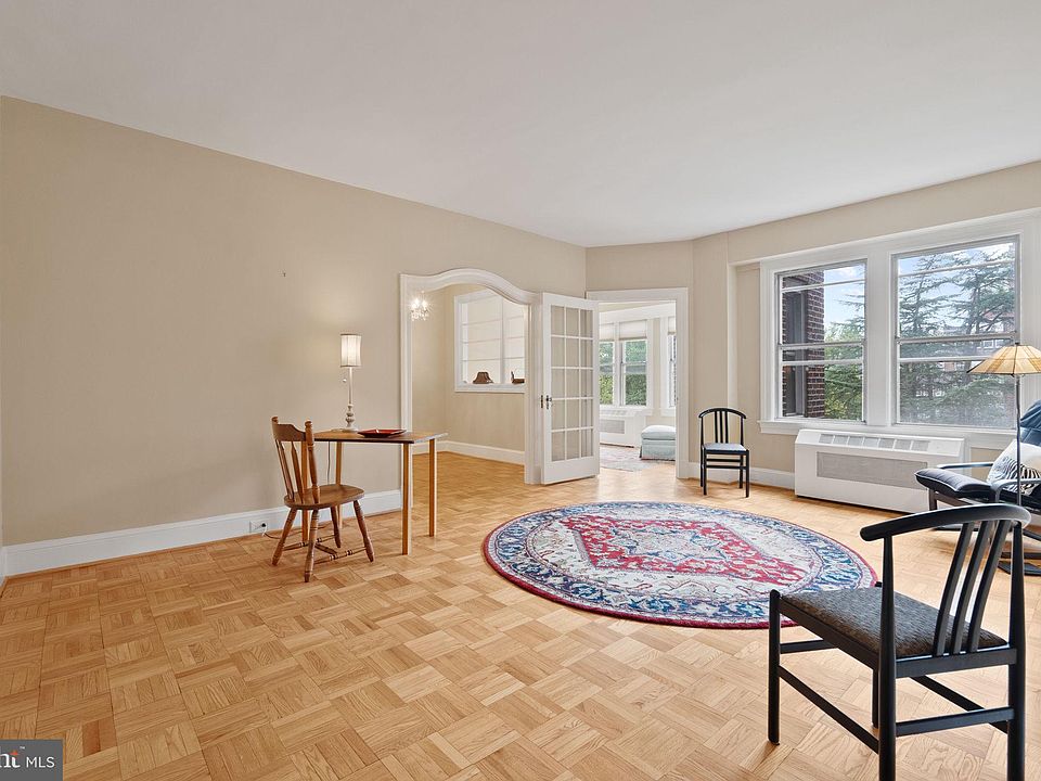 Discover timeless elegance in this sophisticated one-bedroom residence at The Westchester, a landmark cooperative celebrated for its grand architecture, lush gardens, and refined pre-war design. This beautifully proportioned 950 sq. ft. home offers gracious living spaces framed by classic archways, parquet floors, and abundant natural light and sweeping views. The formal living room and adjoining sunroom overlook manicured treetops, providing a serene retreat ideal for reading, entertaining, or a home office. From the windows, enjoy picturesque spring views as flowering trees burst into color and blossoms blanket the grounds and sunken garden. A dining room with crystal chandelier and built-in china cabinets leads to a charming kitchen featuring granite countertops, gas range, and glass-front cabinetry. The bedroom is generously sized with large windows and an expansive walk-in closet, while the bathroom retains its original black-and-white tile—an iconic nod to 1930s elegance. Distinctive architectural details, high ceilings, and solid craftsmanship reflect the enduring quality of this historic address. Residents of The Westchester enjoy an unparalleled lifestyle with 24-hour front desk service, an on-site grocery store, salon, guest suites, fitness center, library, and over ten acres of meticulously landscaped grounds with fountains, walking paths, and formal gardens. Additionally, the monthly co-op fee includes taxes and all utilities. Set amid the quiet sophistication of Cathedral Heights, yet moments from the National Cathedral, Glover Park, and the vibrant dining and shopping of Cathedral Commons, this residence captures the very best of classic Washington living — combining architectural grace, historic charm, and modern convenience in one of the city’s most distinguished communities.