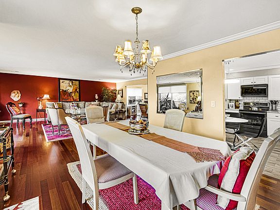 Absolutely stunning and rarely available 2 bed, 2 bath + large den that can easily be converted to a third bedroom. This is the largest floorplan in the building at 2,100 square feet. A spacious & welcoming foyer with a wall-to-wall closet and gallery-style hallway sets the tone for the style and sophistication found throughout. Crown molding accents every room, and the expansive living and dining areas offer incredible space for entertaining, with Brazilian cherry hardwood floors that extend into the den. The updated eat-in kitchen features white shaker cabinets, granite counters, stainless steel appliances, a floor-to-ceiling storage bar, and lower cabinets all with convenient pull-out drawers. The primary suite is a true retreat with extensive closet space including a built-in armoire, a walk-in closet with custom cedar built-ins, a dressing area, and a remodeled en-suite bath with linen closet and step-in shower with floor-to-ceiling tile. The second bath is also fully updated with stylish finishes. Enjoy breathtaking sunsets from the show-stopping, west-facing 500+ square foot private covered deck. Two side-by-side garage parking spaces and private storage included. Resort-style amenities feature an indoor pool, clubhouse, and tennis courts. Convenient shared laundry located in the building. No rentals or pets allowed.