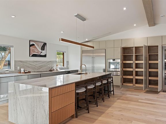 Open Sat 12-2, Sun 2-4! 4000 Greystone sparkles and shines brightly after a thoughtful, thorough renovation. From the heated swimming pool with sitting shelf to the covered outdoor patio with kitchenette and fireplace, this 5 bedroom residence displays quality inside and out. Open concept kitchen and living with oversized kitchen island, Gaggenau appliances, double dishwashers and 6’ beverage fridge create an entertainer’s dream. Three bedrooms downstairs + an office make for almost 1-level living. Spa primary bath has s steam shower, heated floors & towel rack, & direct access to the pool out back.
