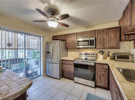 Don't miss this 1st floor condo is located in Winter Park V situated on a dead cul-de-sac. Offering a 2 bed 2 bath with a short walk to the pool, tennis, bocci and pickleball courts with a new clubhouse. The unit has a screened in front lanai, and a rear paver 10x14 patio over looking meadow with a pond. Condo offers a brand new and updated kitchen with all new appliances, oversize sink and plenty of cabinets and counter space, it also features a breakfast bar that opens to the dining room and living room. Laundry room has an additional closet for storage and pantry. Condo is tiled throughout and master bathroom is completely renovated with tiled shower and tub and a spacious walk in closet. New higher toilets in both bathrooms. A/C is 2 years young and a new 1 year old hot water heater.