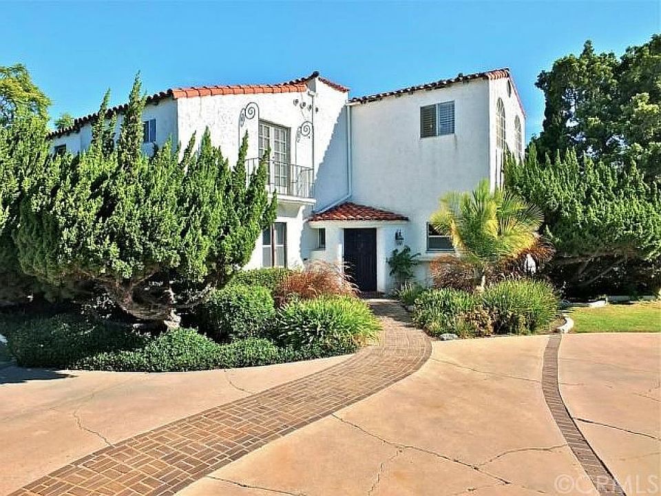 Large Mediterranean villa prominently set on a prime corner lot in Bixby Knolls is a diamond in the rough. In need of TLC this property is in easy walking distance to shopping, restaurants and great schools. The sweeping motorcourt approach with bricked walkways, creates an impressive yet warm welcome. An arched entry door with a stained glass window opens to the reception foyer defined by archways and a beamed ceiling area. Fireside lounging in the gracious living room is embracing, with its cathedral beamed ceiling, arched garden view window and arch way passage to the dining and family rooms. The Formal dining with beamed ceiling is adjacent to the family kitchen with walk-in pantry, breakfast room, sliding glass doors to the rear patio plus access to the family room. The family room opens to the pool and patio. Original wrought iron bannisters accent the staircase to the 4 upstairs bedrooms. Secluded on its own level, the master suite boasts 4 windows with plantation shutters a gas fireplace and bathroom. The gated pool plaza is resort-like with its slide and expansive sunning terrace. A one bedroom guest quarter / unit sits atop the garage and laundry room. Archways open and connect the poolside recreation room and convenient bathroom. NEEDS TLC