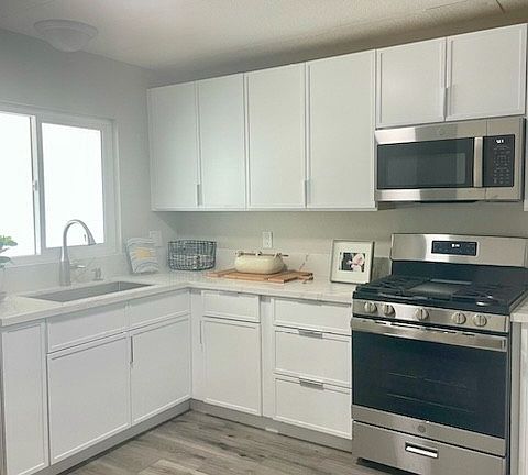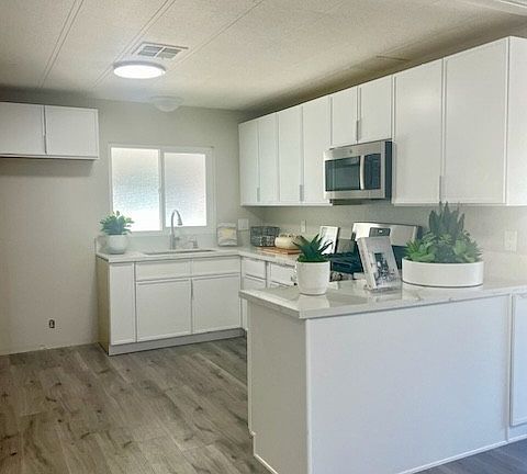 Discover refined living in this beautifully renovated home where thoughtful updates merge seamlessly with modern comfort and accessibility. Offering 1440 sq ft of meticulous upgrades with an emphasis on easy maintenance. 2 bedrooms 2 baths with an open floor plan is just a start, this home also has a new silicone roof coating, new dual pane windows, new subfloor throughout, new waterproof laminate flooring, new tile shower, new water heater, new HVAC, new plumbing fixtures, new kitchen cabinets & appliances. The climate control system has been upgraded to include a user-friendly smart thermostat offering both comfort and efficiency. The primary bedroom presents a generous walk-in closet with ample storage. The big-ticket items have already been replaced so that expense is out of the way. Bring your furniture, something to eat and make this your new home in a beautiful 55+ community with activities and amenities for you and your guest to enjoy!
