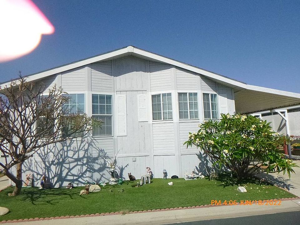2005 CAVCO, 1500 SF+, LARGE HOME ON NICE LOT, IN DEMANDING OVER 55 PARK. "RIVERSIDE MEADOWS" DECAL # LBH3976, SER.# CAVAZD00289X/U. This very spacious home boasts an oval kitchen with all built-in appliances, and plenty of kitchen drawers, cabinets and counter space. All appliances stay, including refrigerator and washer/dryer. The kitchen has three large oval windows facing the front street allowing plenty of daylight, along with ceiling fans and lights throughout the home. Off the kitchen is a very nice dining area along with a large living room with entrance to the front porch and a real grass side yard. The 3 bedrooms are quite large, and the master bedroom includes the master bathroom (double Sinks) and walk-in closet. The guest bathroom has a shower/tub. Also, a separate laundry room has a nice laundry folding area and more storage, this leads to the driveway entrance, that can hold at least 2 cars, with 2 sheds at the end of the driveway. This home is in good condition with newer laminate floors, all appliances work and are in very clean condition. This large home is a special find in our park, most are 2 bedrooms 2 bath, average size 1200SF. It won't last in our market, so don't wait. Call to make an appointment NOW! Contact Jean Redd Our Senior Community offers many activities for our seniors to enjoy. Come see for yourself and join this welcoming active senior community. Home details available at www.mhvillage.com/2690478 2005 Cavco Sl2864c 1500 Sq.Ft. 26' X 56' 3 Bedrooms 2 Bathrooms Color: Grey Trim Color: White Shingled Roof Hardboard Siding Hardiboard Skirting Drywall Ceilings Drywall Walls Gas Heating Carport Storage Shed Gutters Deck Patio Thermopane Windows Cathedral Ceiling Has Ceiling Fans Has Skylights Central Air Walk-In Closet Laundry Room Pantry Garbage Disposal Microwave Oven Refrigerator Dishwasher Clothes Washer Clothes Dryer Lot Rent: $1045./Month Located in Meadows Mobile Home Park, at 4000 Pierce St, Riverside, CA At Riverside Meadows, the atmosphere is like a resort-perfect for outdoor activities such as shuffleboard, swimming, or just taking in the warm Southern California sunshine! Come see for yourself. You ll love our beautiful 55+ community.