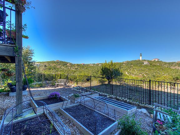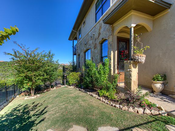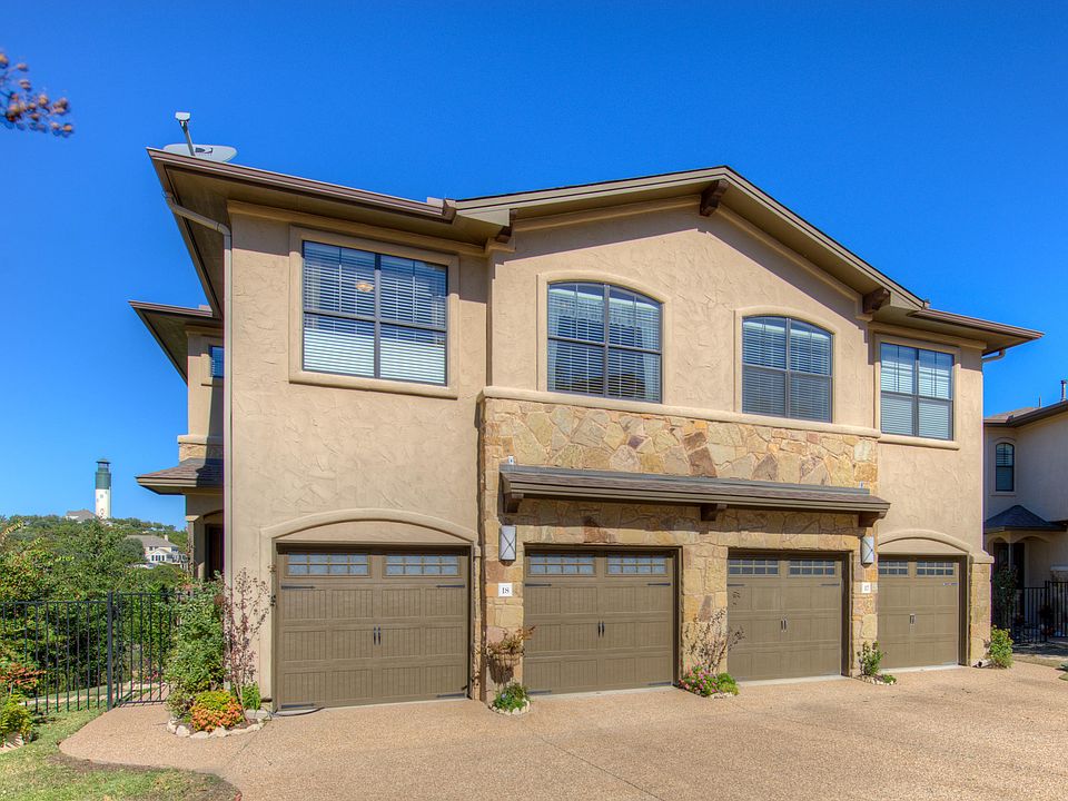 This beautiful model unit, overlooks the pool and Enclave Canyon, an exclusive 14 ac park with Lake Access via trails. Open floor plan, covered over sized balcony off living room with views of the canyons and Lake Travis. Gourmet kitchen with stainless steel appliances, gas stove, breakfast bar and indoor utility room. Master suite has private over sized covered balcony with amazing views of the canyons and the lake. Largest fenced yard in complex with nice landscaping and a private veggie garden. You have easy access to Lake Travis via public boat launch, downtown Austin and surrounding cities. HOA maintains exterior and yards outside the fenced area.