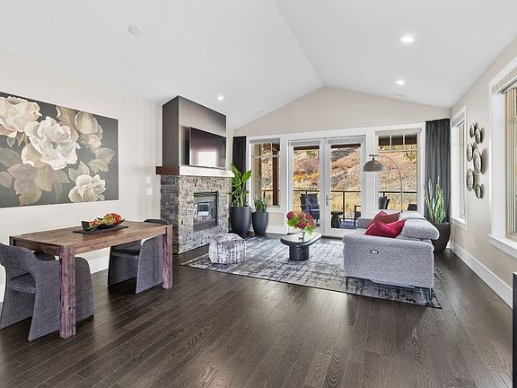 This lovely semi-detached top-floor home offers a comfortable living space in an inviting open-concept design. Freshly painted throughout, it feels bright and refreshed from the moment you step inside. Panoramic windows fill the home with natural light and showcase the gorgeous natural backdrop, while vaulted ceilings add a sense of spaciousness. The stylish kitchen features ample cabinetry, a large island, granite countertops, stainless steel appliances including a gas range, and a pantry. The luxurious primary suite boasts stunning views of Pincushion Mountain and a spa-inspired ensuite with a soaker tub, tile shower, and double vanity. Both bedrooms feature new carpet for a cozy, updated feel. Step outside to a sprawling wrap-around covered deck with pavers—ideal for dining al fresco or relaxing in the fresh air. Enjoy year-round comfort with geothermal heating and cooling (included in the strata fee), complemented by a cozy gas fireplace. Private setting with no home behind and breathtaking views. Single garage with private driveway. Pet friendly—up to two pets allowed. Minutes to Peachland’s waterfront, coffee shops, restaurants, lakeside boardwalk, and endless hiking trails right at your doorstep. Situated next to an approved 9-hole executive golf course—The Trails offers the best of Okanagan living!