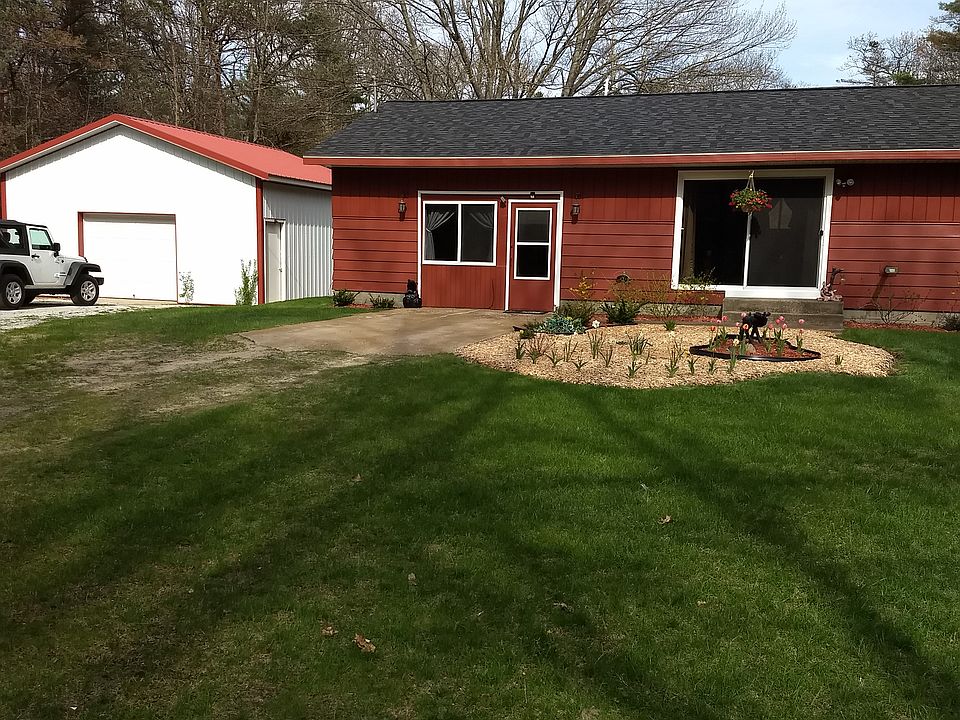Great home. hunters paradise quiet secluded private setting hunt right out your back door on your 5.2 acres. All on one level, 2 bedrooms and 2 full baths. Reeths Puffer School district. Everything is new or newer. All new floor coverings, Knotty Pine walls and beautiful textured walls. Deer antler light fixtures and switch plates. New water heater loads of storage. 2 new glass sliders, a newer pellet stove that will heat the entire home. Deck, 10 x 10 shed, and a 20 month old pole barn. The pole barn is 24 x 24 with 10-foot walls. Full concrete slab and electricity. New well pump bladder and plumbing going to the well. New roof in 2016, fully vented new soffit baffles, and added insulation. The backyard is fenced in and has sod. The front yard has been professionally landscaped.