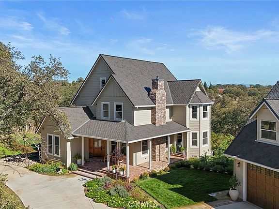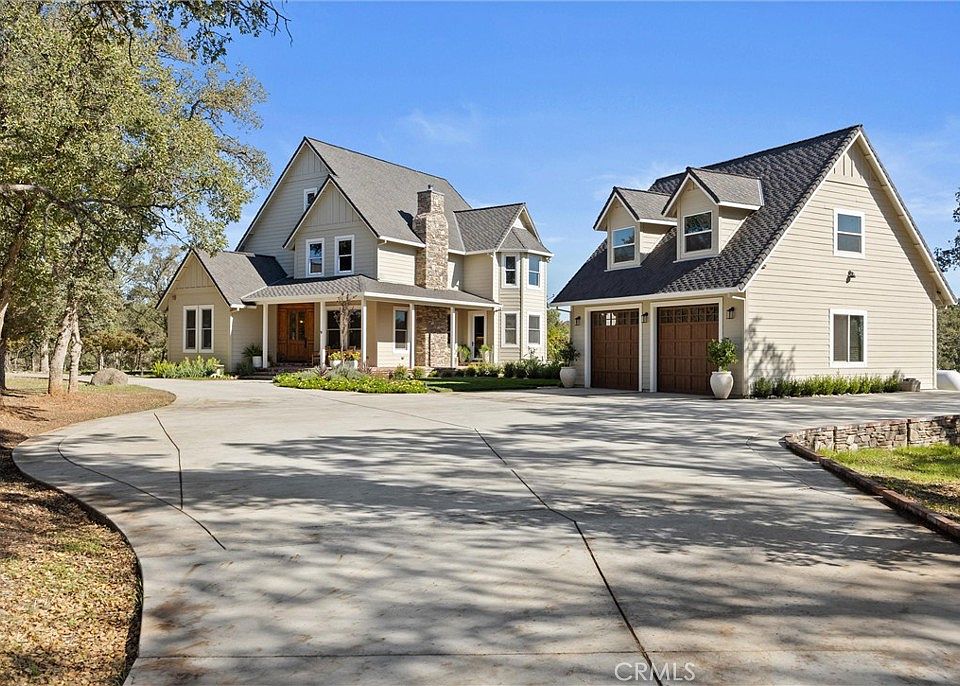 Tucked away in The Oaks, is this stunning custom-built 4-bedroom, 4-bathroom estate which offers timeless elegance and modern luxury, featuring 2,554 sq. ft. with an additional 350 sq. ft. of living space above the carriage-style garage. Every inch of this home reflects exquisite craftsmanship and thoughtful design, making it feel like a Better Homes & Gardens feature brought to life. Step inside to discover soaring ceilings, custom-milled doors and moldings, and abundant natural light pouring through elegant windows. The spacious living room features a custom stone fireplace and mantle, creating the perfect space to relax or entertain. The chef’s kitchen is a true showpiece, equipped with top-of-the-line Thermador appliances—including a restaurant-size refrigerator, 8-burner double oven range, and custom vent hood. Rich granite countertops, custom cabinetry, and a large island with seating and an integrated sink complete this gourmet space. The dining area opens through glass barn doors into a beautiful sunroom, perfect for enjoying your morning coffee or evening wine year-round. Downstairs also includes a bonus room with an ensuite bathroom, ideal as a guest suite, office, or additional bedroom. Upstairs, the primary suite is a private retreat with French doors leading to a serene lanai with hot tub to enjoy those starry nights. The spa-inspired bathroom features dual vanities, a soaking tub, and a luxurious custom tile shower for two. Two additional bedrooms and a full bathroom complete the upper level. The carriage-style garage includes its own bathroom and staircase leading to a 350+ sq. ft. finished living space—perfect for guests, a college-aged child, or potential short-term rental (VRBO/Furnished Finder). Note: The space does not include a kitchen; buyer to verify ADU potential. The backyard oasis has been recently upgraded with thousands in landscaping improvements—new sod, sprinklers, curbing, and a tranquil gazebo. Additional features include RV parking, generator backup, garden and herb spaces, and a cement driveway that completes this meticulously maintained property. This one-of-a-kind estate truly has it all—style, space, and sophistication—ready for you to move right in and make it your own. Located in the "Tierra del Roble" estates. Buyer to verify all information to their satisfaction.