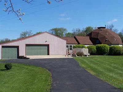Warm and Cozy Retreat! Unique 3 bedroom, 2 bath energy efficient ''Dome" home on 12 acres with walkout basement with large screened patio. Open floor plan includes 3 seasons room, a loft bedroom or bonus room on the 2nd level, 3 car detached garage plus 2 pole buildings (24 x 64) & (32 x 56). One pole building is equipped with 2 horse stalls and electricity. 3 pastures have Electro Braid fencing. RV Canopy and Generator are excluded. Well located for commuting to Ann Arbor or Lansing.