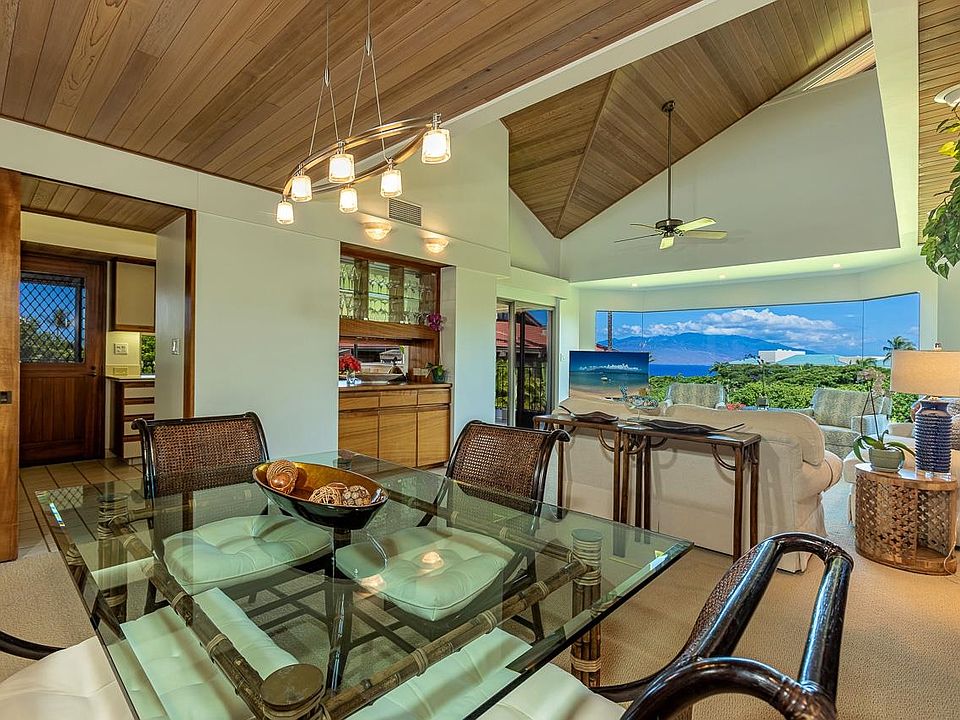 From the moment you enter Wailea Point 1904, the world seems to pause. Before you lies a sea of liquid blue: waves shimmering under the sun, clouds drifting like silk across the West Maui Mountains, and the scent of salt carried on the breeze. It’s not just a view; it’s an experience that reaches into your senses and holds you there, suspended between sea and sky. Polished marble floors guide you through a space defined by craftsmanship and grace. The great room, with soaring 20-foot ceilings and natural clear cedar soffits illuminated by art lighting, opens wide to a 24-foot mitered glass bay window that frames Wailea Point’s lush gardens and the boundless Pacific beyond. Here, light is architecture, and every surface, from the richly grained Hawaiian Koa doors to the glass walls that dissolve the boundary between indoors and out, invites calm and connection. Step through sliding glass doors onto the expansive 339-square-foot wraparound lanai, where the rustle of palm fronds and the fragrance of plumeria accompany every meal. This is the essence of island living: dining alfresco, surrounded by nature’s color and sound. A built-in BBQ and ocean-view kitchen make entertaining effortless, with glass-on-glass corner windows that bring the gardens and horizon into every culinary moment. The primary suite, a sanctuary of quiet refinement, opens to its own private lanai. Sunlight pours through three skylights into the en-suite bath, complete with dual vanities, a radius-tiled shower, and thoughtful design that feels both indulgent and intimate. The guest suite offers its own sense of retreat, with garden vistas that soothe the spirit. Ascend the sculptural steamed-and-bent mahogany spiral staircase to a lofted third bedroom, an airy hideaway with a walk-in closet, perfect for guests or a creative escape. Set across 28 acres of oceanfront paradise, Wailea Point is a world unto itself bordered by two of Maui’s finest beaches and adjacent to the Four Seasons and Fairmont Kea Lani Resorts. A gated enclave offering unmatched privacy and prestige. Enjoy two resort-quality pool pavilions for hosting community gatherings as well as the owners' private use, a fully equipped gym, lighted tennis and pickleball courts, a cold plunge, multiple BBQ areas, and 24-hour roving security. Fine dining & shopping, world-class golf & tennis, plus hiking & diving are all nearby! Wailea Point is Maui’s Finest Condominium and a Legacy Property!
