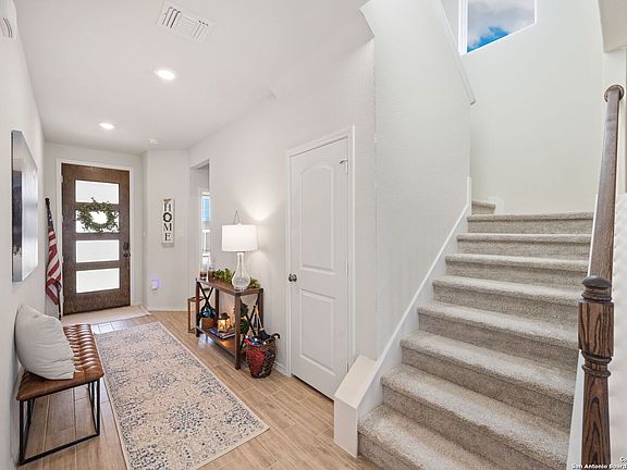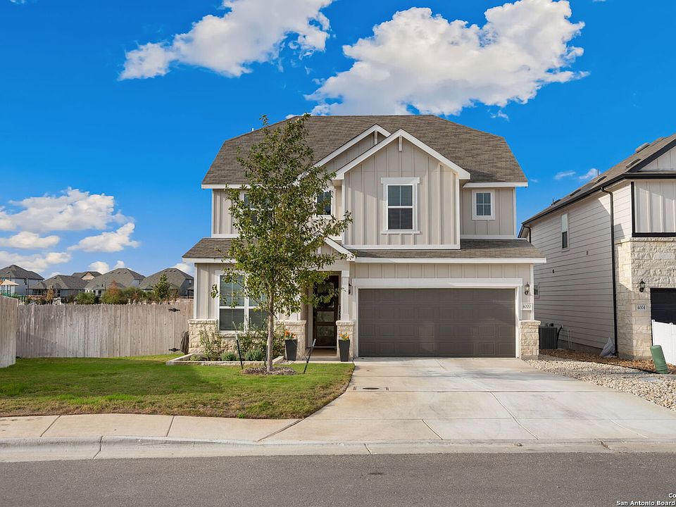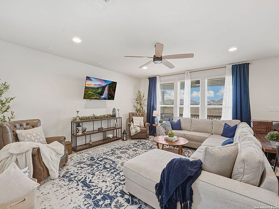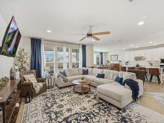 Step into modern comfort and convenience in this beautifully designed 4-bedroom, 3-bath home built in 2024 by Pulte Homes. Offering 2,772 square feet of thoughtfully planned living space, this property stands out with its larger lot-providing extra breathing room rarely found in the neighborhood. Inside, the open-concept layout blends style and function. The spacious living and dining areas flow seamlessly into a contemporary kitchen, perfect for everyday living or hosting friends and family. A desirable secondary bedroom and full bath are located downstairs, ideal for guests or multigenerational living. Upstairs, a dedicated media room offers the perfect spot for movie nights, gaming, or relaxing. The home is equipped with a full sprinkler system, water softener, and professional landscaping for a truly move-in-ready experience. A 2-car garage adds convenience and storage. Located between New Braunfels and Seguin, this home provides quick access to shopping, dining, and the I-35 corridor-making commutes and errands effortless while still offering a peaceful suburban setting. With its modern construction, premium features, and exceptional lot size, this property is an outstanding opportunity in a rapidly growing area. Ready for its next owner-come make it yours!