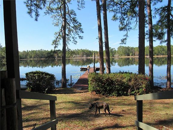 Bear Bridge Ranch is a 146 Acre sportsman's dream, an ideal secluded weekend Get-A-Way or a place to live and enjoy the great outdoors. Located just off Hwy 44 in Pinelake, Florida between Eustis and Deland and only 30 minutes North of Orlando convenient to all major highways. Approximately 50 acres of the property is fenced and is used as a wild hog hunting business offering one, two or three day hunts. This is a turn key opportunity with free roaming whitetail deer and Osceola turkeys also on the property. The property would also be perfect for two or three homesites. You'll have your own private 15 acre lake, beautiful open wooded picnic area and a long range shooting complex. There are three separate living quarters of which the first is a 1,624 SF main house with three bedrooms and two full baths and a picturesque view of the lake from the living room, kitchen or the spacious relaxing porch near your boat dock. This home is completely furnished as are all, decorated and ready for your enjoyment. The second home is now the caretakers quarters and is a 644 SF one bedroom, one bath which is located adjacent to the main house. The third house is located away from the main house and is a 1,822 SF three bedroom, two bath home presently used for guest of the ranch and accommodates twelve individuals. It has a lodge atmosphere with open space kitchen and pool room area. Ancillary buildings include a 2,000 SF metal building used for storage of tractors, trucks, carts and other large equipment.