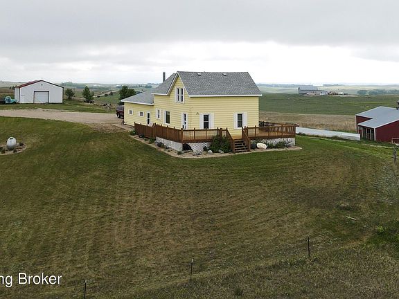 Make your dreams come true! Move to the country just 15 minutes from Bismarck. View your 39.57 acre property from the beautiful wraparound deck of the 4 bedroom, 3 bath 2-story house. Enjoy 360 degrees views with breathtaking sunrises and sunsets. Enjoy your fully finished home with attached 3-stall garage. Tastefully decorated, planned for comfort, room for family and guests. Ready for hobbies, inside and out. The 36x50 Morton building with sturdy concrete floor and the 3300 sq. ft. barn, rural water, and fenced pastures help make the living easy.