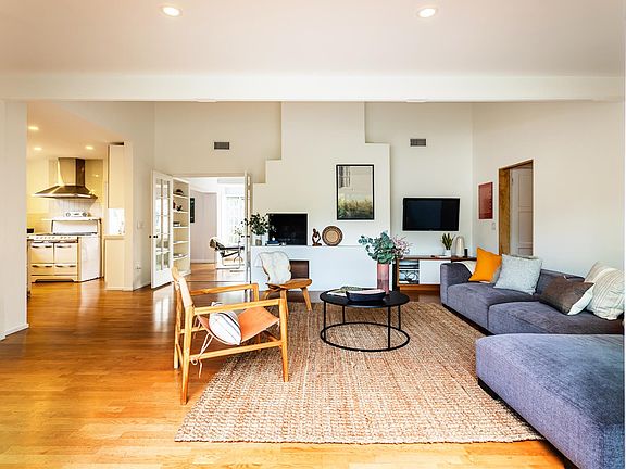 Welcome to 4001 Alcove, a south of the Blvd modern traditional single level, open concept Studio City home w/ detached two-car garage (perfect for home office, guest cottage). Enter an airy, sunlit living room leading to a great room with updated kitchen, vaulted ceilings, and large sliding glass doors that beckon onto a magnificent Brazilian teak deck overlooking the pool. This is a home designed for the way we live -- indoors and out. Master bedroom (opens to backyard), full bath, and generously-sized second bedroom are located off a private wing of the home. The second bath features a walk-in steam shower. Hardwood floors, Bosch appliances, natural basalt & French limestone tiles, and Duravit sinks & dual flush toilets complete the picture. Spacious front and backyards -- for play, contemplation, and inspiration, enclosed by fence and driveway gate. Private, yet within striking distance of all the best Studio City has to offer. In top-rated Dixie Canyon district & near HW