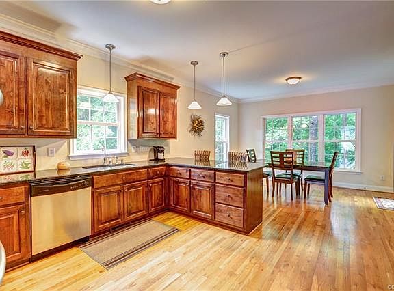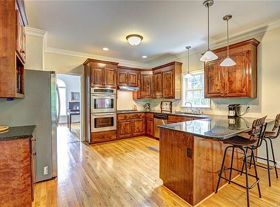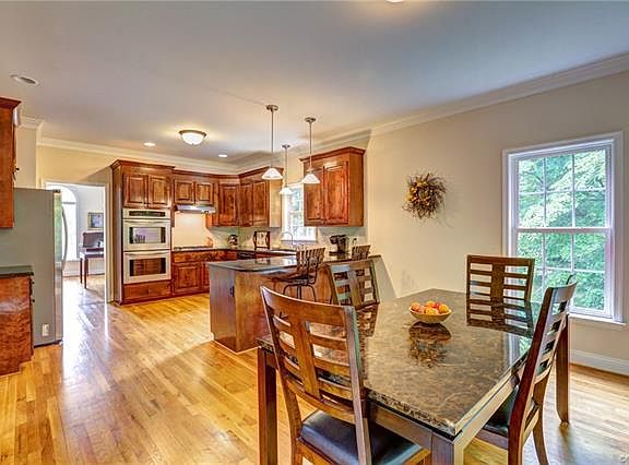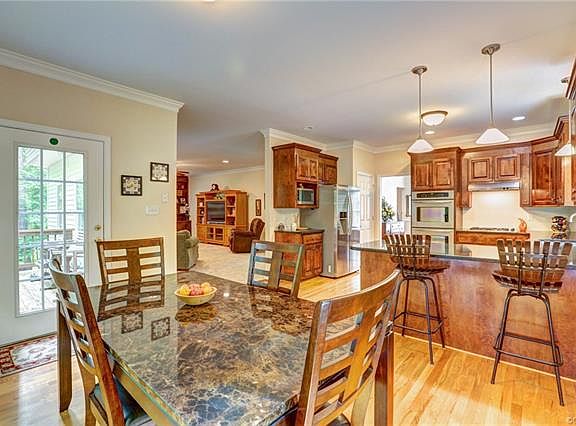 Beautiful transitional home situated on a quiet cul-de-sac overlooking a wooded backyard. The first floor features formal dining room with dental & chair moulding, first floor bedroom with attached full bath, family room with gas fireplace and built-ins, and kitchen with stainless appliances, granite countertops, gas cooktop, double ovens and morning room with door to newly stained deck. Upstairs are 4 additional bedrooms, including the master, a hall bath with double vanity, laundry, and stairs to 3rd floor unfinished attic that could be easily finished. The master has his/her closets and master bath with jetted tub, separate shower and water closet. The basement in the perfect rec room or man cave with wet bar and full bath. The yard is easy to maintain with 3 sided irrigation, fenced backyard, and wooded area with stream provides privacy and scenic views from kitchen and back deck. New roof in 2017. Your new home awaits!
