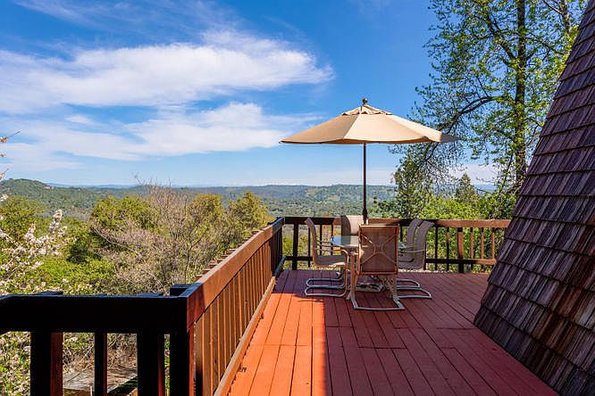 Enjoy the lovely Sierra and local view from this private setting surrounded by trees, seasonal stream, pond and garden area. Home features an open floor plan, vaulted T&G ceilings, upgraded kitchen with stainless steel appliances, granite counters, gas range & pantry. Remote master on upper level with loft area. Small office or workshop in basement area. Grape vines, chicken coop & fenced pastures are a few of the amenities.