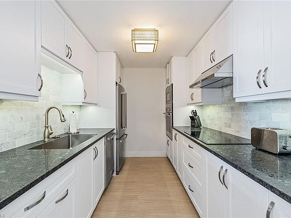 Live the coastal lifestyle in this beautifully updated ninth-floor, two-bedroom beachfront residence at Surfsedge, ideally in the sought-after Park Shore neighborhood. Enjoy peaceful Gulf views from every room and your expansive balcony. Notable features include tile flooring throughout, impact-resistant sliders, and in-unit laundry added for extra convenience. The kitchen is equipped with stainless steel appliances, granite countertops, soft-close cabinets and under-cabinet lighting. Additional features include a covered parking space and an extra storage locker. Have peace of mind with an on-site manager, secured gate and entry, and 24-hour security. Recently completed renovations showcase a new lobby, beachfront resort-style pool and spa, grilling area and fire pit, social room with kitchen and wet bar, fitness center and two guest suites. Residents also enjoy being near the beach and access to the private Park Shore promenade, a 1.3-mile paved path along the beach. Owners can lease their condominium once a year with a 90-day minimum. Boaters can buy or lease a slip across the street at the Venetian Bay Yacht Club. After a day on the water, enjoy the convenience of being within short distance of fine dining and shopping at Venetian Village and only a 10-minute drive to historic downtown Naples.