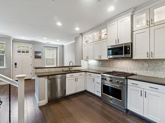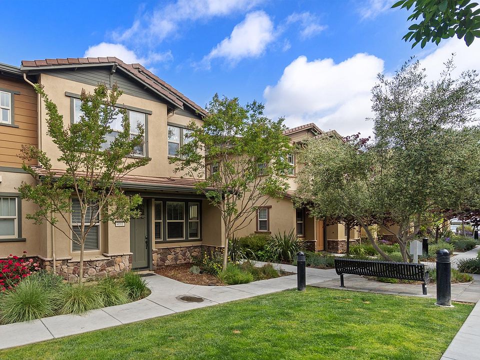 3.5 Bed and 2.5 Bath Townhome, Los Altos Built in 2014, this end unit townhome enjoys the latest conveniences in modern design, including open living spaces, high ceilings, contemporary kitchen and bathrooms, and energy efficiency. The 38-unit Sherwood Gateway community offers a quiet yet convenient location, moments from top Los Altos schools, Caltrain, Whole Foods, and San Antonio Center that features shopping, dog park, and movie theater. Front entry faces the central lawn and opens into a bright dining area and living room, with large bay windows. Stylish eat-in kitchen with stone countertops and full tile backsplash, high-end appliances and dual oven. Large 2 car attached garage opens to the kitchen and a half bathroom. The upstairs features a dedicated office area in addition to 3 bedrooms. Large master bedroom features a walk-in closet, sitting nook and a spa-like marble floor master bath with double sink vanity, garden tub, glass shower and beautiful tile work. Large capacity washer and dryer set. This south-east facing unit features crown molding and many windows throughout the units including stairs that provide natural light from dawn to sunset. Centrally located in the complex, an extremely rare find in such a convenient location. 3D tour available