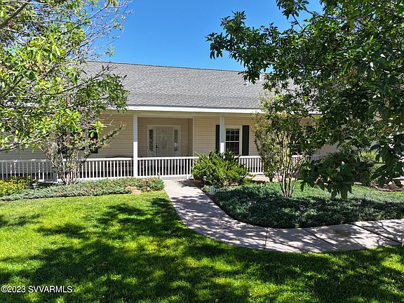 Great Potential exists on this 6.26 acres for a variety of uses, possible Bed & Breakfast, Winery, Commercial, Great Panoramic Mountain & Valley Views. Views of the verde river tree line, Private, Electronic entrance gate, Beautiful lush landscaping yard, terraced hillside, lots of mature evergreen trees, fruit trees, including peach, pear and apple, flowers, flagstone pathways. Great 2,167 sq.ft. 4 bedroom, 3 baths, gas fireplaces in Owner Suite & Living Room, Owner Suite features 2 bathrooms, 2 car attached garage plus 1500 sq.ft. Workshop that you have been looking for with 14x14 electric roll up doors on both ends (Shop, RV Garage, will accommodate a 45 foot RV or 4 car garage), Wide concrete driveway up hill to gate, concrete parking areas & turn-a-rounds at the top, Set up for entertaining, great room floorplan, extra large rear patio, great well with additional storage tank, property can be split.