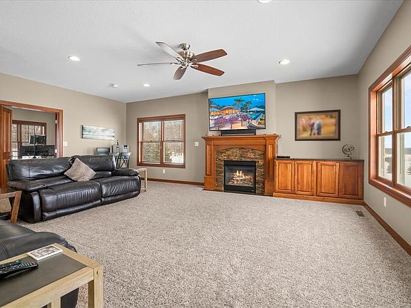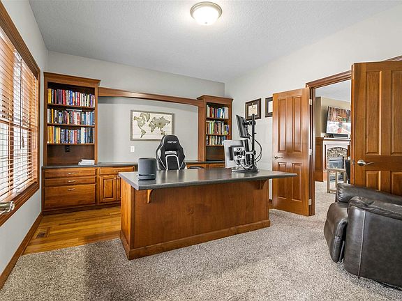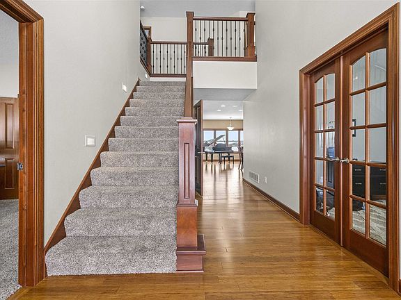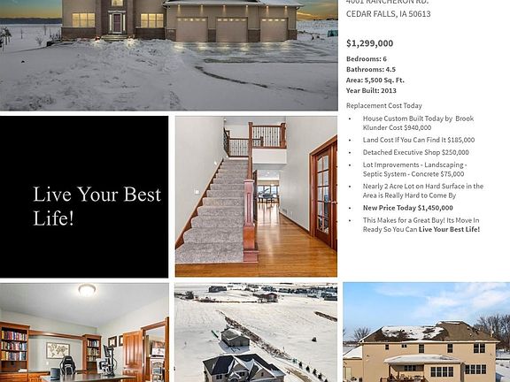 This Extraordinary Acreage Checks All The Boxes! Let me take you on a tour through one of the most well designed 2 story homes in the Cedar Valley! Stepping through the front door you you immediately feel the spaciousness this home offers. Entry way boasts 18ft ceilings and grand staircase to the second level. Immediately to your left and right you have two executive offices for those that work from home. Office to the left has custom builtin cabinetry and solid wood french doors that open up to the living room. Office to the right could also serve as a formal dining with access to the kitchen. Heading down the hallway the next stop is the large living room (18x23) with 9' ceilings, gas fireplace/stone surround and solid wood mantle with matching cabinetry. Large Andersen windows with wood blinds throughout the home offer great natural light. Open floor concept allows for easy viewing from the kitchen all the way through to the living room. Next stop is the Kitchen/Dining Area. Bamboo flooring makes for a warm feeling as it blends with the custom Omega cherrywood cabinetry. These cabinets offer slow close doors and drawers with pullout trays. Spacious granite center island (8'x5') with builtin 5 burner gas cooktop stove as well as 2 ovens to prepare for the family gatherings. You can never have enough pantry space and this home offers not one but two! Save the trip to the basement or garage and keep your extra freezer in one of these pantries. Coming in off of the garage you have a large drop zone for coats, shoes etc. space to hang everything up as well as an additional closet and tile floor for easy cleaning. Now we head to the upstairs to the master suite (14'x18') which offers a master bathroom that carries the Omega cabinetry throughout, double sink heated tile floor, speakers, private toilet room, soaking tub and walk in shower. Master closet is very spacious with complete closet organizer. Bedrooms two & three have a Jack and Jill bathroom with double sink and both have walk in closets. The 4th bedroom upstairs has its own private bathroom. No more carrying laundry up and down the stairs as this home has a large upstairs laundry room (10'x16") with plenty of cabinet space, sink and storage closet. Additional bonus room (17'x13') off of the laundry room could serve as an additional 5th upstairs bedroom, storage room, craft room and the list goes on and on! Now we head to the lower basement level that was built for entertaining. Walk out to lower level patio area. Theater room is great for movie night. Walls have sound board installed behind the drywall in the ceiling for sound deadening so you can turn up the built in sound system! Work out room offers all the space you need to get your daily exercise in. If four bedrooms upstairs isn't enough there are two additional bedrooms and a 3/4 bath down for a total of 6 bedrooms and 5 bathrooms. Lets head outside where you can relax and take in the country air from the partially covered deck that offers Trex decking, outside speakers and wired for TV. Property was professionally landscaped and occasionally you will see deer, turkeys and even the bald eagles flying overhead. Attached to the house you have an over sized fully insulated and heated 3 stall garage (1106 SQ.FT.) with hot and cold water hook ups, floor drain and finished with an epoxy floor. Now off to the additional outbuilding (36x56). Fully insulated with closed cell spray foam on walls and ceiling along with heater. Professional epoxy floor with floor drain and hydrant plus hot and cold water hook ups. This space is great for all of the toys!Close proximity to bike trails and kayak trail access at the bottom of the road. You are located in the Hudson School District that was just rated "Exceptional" on the Iowa School Report Card. Only 19 schools in Iowa received this rating. No HOA, close proximity to shopping district, entertainment venues and so much more. This is one you definitely will want
