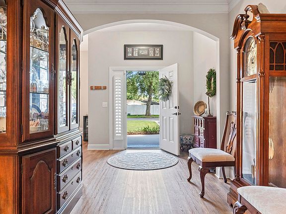 Timeless all-brick ranch with a functional split-bedroom design and stylish, well-planned interior finishes. The open-concept living area is accented by a tray ceiling and flows seamlessly into the kitchen and breakfast nook, creating a welcoming space for gathering and daily living. Plantation shutters throughout the home add an elegant touch while enhancing natural light and privacy. The kitchen is outfitted with stainless steel appliances, granite countertops, a work island, and a spacious walk-in pantry to meet all your storage needs. An arched entry adds character while connecting the main living spaces to the formal dining area and foyer. The primary suite is privately located and filled with natural light from large windows, highlighted by a double tray ceiling. The en-suite bath offers a spa-like experience with a deep soaking tub, floor-to-ceiling tiled shower, dual granite-topped vanities, and two walk-in closets. Two additional bedrooms and a full bath are located on the opposite side of the home, with a third full bath positioned near the laundry area and garage entry - ideal for guest use or daily convenience. Step out to the screened back porch equipped with ceiling fans, where views of the pond and peaceful 13-acre backdrop create the perfect escape. The backyard was designed for relaxing and entertaining, featuring a custom patio, pergola-covered hot tub, fire pit with curved stone bench, and cobblestone walkways connecting every element. The fenced yard is surrounded by lush, mature plantings, including gardenias, ginger lilies, and hydrangeas, framed by a stone flower bed and complemented by freshly laid Zoysia sod. Low-maintenance upgrades such as French drains and Leaf Guard systems are already in place. Recent updates include fresh paint in the kitchen, living area, and third bedroom, along with professional servicing of the hot tub and irrigation system. The exterior, including the driveway, fence, windows, and house, was also pressure-washed in late June, making this home move-in ready and truly exceptional. Measurements are not guaranteed. Buyer is responsible for verifying.