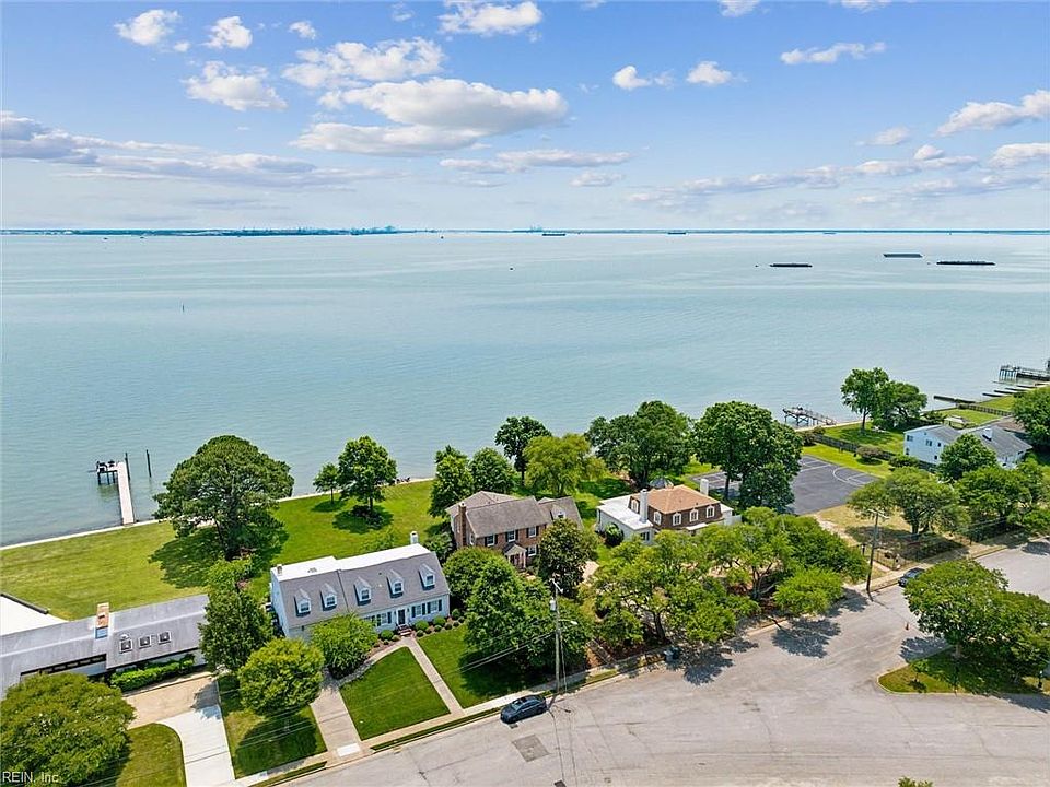 Enjoy stunning WATERFRONT living in the Merrimac Shores neighborhood! This beautifully maintained brick colonial home offers breathtaking views of the Hampton Roads Harbor from multiple rooms and outdoor spaces. Step out onto the expansive deck or private balcony to take in the sunrise over the water. Features include 5 spacious bedrooms, 3.5 bathrooms, an open living area with large windows for natural light, and a modern kitchen with granite countertops and stainless steel appliances. The primary suite offers a serene retreat with water views, a walk-in closet, and en-suite bath. Located on a quiet, sought-after street with easy access to beaches, marinas, dining, Downtown Hampton and Fort Monroe. Perfect for full-time living or a relaxing coastal getaway!