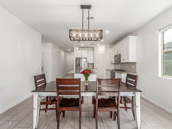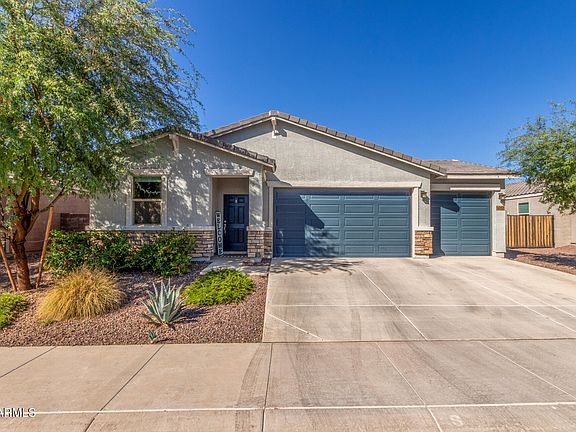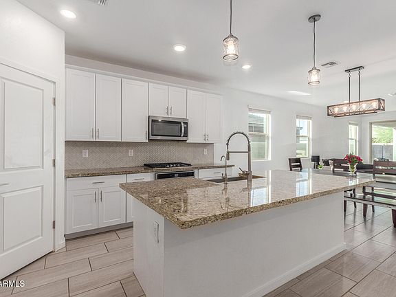 Welcome to this beautifully appointed 4-bedroom, 3-bathroom home with a DEN, and a 3-CAR GARAGE in the exclusive gated community of Archer Meadows. This highly upgraded residence features 42-inch White Chatham cabinets, Moon White granite countertops, a farm sink, and a stylish herringbone backsplash in the kitchen. The main living areas showcase elegant 12x24'' tile flooring, while the bedrooms include Cunard Place Sandlewood carpet for added comfort. Energy efficiency abounds with spray foam insulation and PAID OFF SOLAR at CLOSE OF ESCROW. A full ENSUITE bedroom at the front of the home provides ideal guest accommodations, and a convenient drop zone off the garage adds everyday functionality. The backyard is designed for low-maintenance living with pavers and artificial turf—perfect for relaxing or entertaining under the Arizona sky. Enjoy community amenities just steps away, including a pool, clubhouse, and fitness center. Located minutes from the Olive Mill, Schnepf Farms, The Pork Shop, and other local favorites, this meticulously maintained home offers an open-concept layout ideal for both everyday living and entertaining.