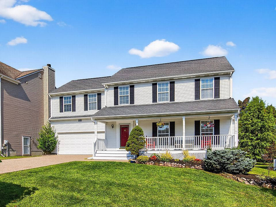 Welcome to this well maintained 2-story home in the sought-after Fairfield Meadows neighborhood! Offering 4 bedrooms, 2.5 baths, and a 2-car garage, this home is perfect for growing families or those looking for extra space in a peaceful, well-established neighborhood. Step inside to find 9ft ceilings in a freshly painted interior that's bright, clean, and ready for your personalized touches. The inviting gas fireplace sets the tone for cozy evenings, while the flowing layout offers comfort and function throughout. Upstairs, you'll discover a large primary bedroom with an en-suite and walk in closet. Also, an oversized 4th bedroom—ideal for a media room, home office, or guest suite. Each bedroom features generous closet space. Out back, enjoy the covered deck perfect for relaxing or entertaining. The backyard is fully equipped for family fun, featuring a custom-built kids playhouse that's sure to delight the little ones, and a built-on tool storage shed ready for all your hobbies or gardening needs. Plus, a full unfinished basement that's already plumbed for a bathroom—ready for future expansion. Enjoy your morning coffee on the covered front porch, and take advantage of the home's curb appeal, solid structure, and endless potential to make it your own.