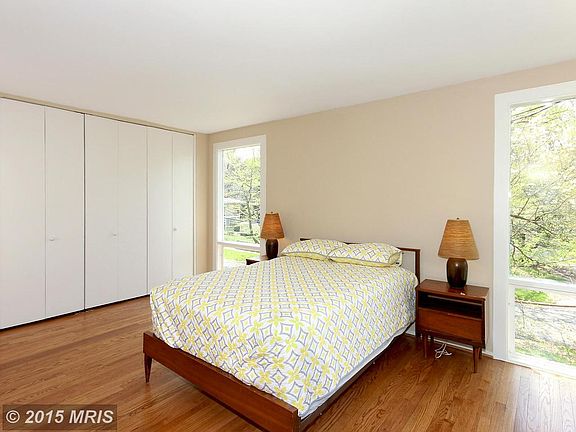 Open Sunday 5/17 2-4p Fabulous contemporary home designed Charles Goodman. His homes have graced the Washington area and are much in demand. This 4-5 BR 3 BA features walls of glass allowing light to cascade in. Many recent improvements including bathroom updates, refinished wood floors, lighting upgrades and fresh paint. Set in a wooded setting w/ fantastic deck to enjoy the natural setting.