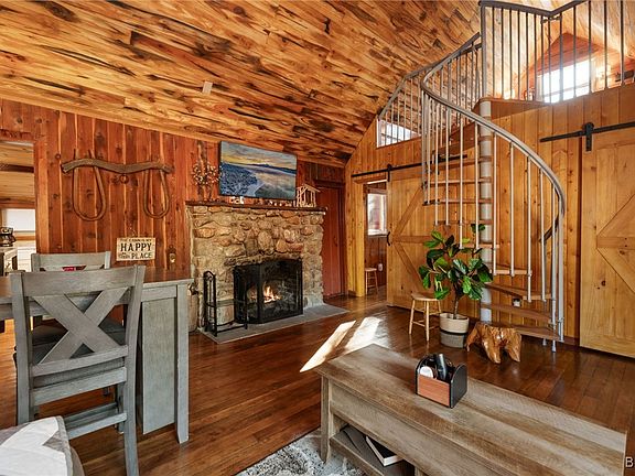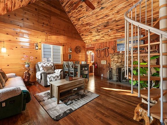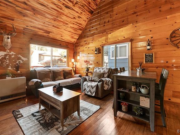 Discover the perfect blend of rustic charm and modern convenience in this meticulously maintained log style cabin. With 2 bedrooms, a loft, and a beautifully updated bathroom, this home offers ample space for relaxation and entertainment. Step inside to find stunning knotty pine walls that exude warmth and character, complemented by a unique burnt knotty pine ceiling that adds an inviting touch. The centerpiece of the living area is a gorgeous stone fireplace, perfect for cozy evenings. The refinished real wood floors flow seamlessly throughout, enhancing the cabin's natural beauty. The remodeled kitchen boasts modern appliances and thoughtful updates, making it a delightful space for culinary endeavors. Outside, the backyard has been transformed into a serene oasis, featuring a new retaining wall, lush artificial turf, and a brand-new shed for all your storage needs. This outdoor space is ideal for gatherings, play, or simply enjoying the tranquil surroundings. Convenient street to street lot with large gate in back, perfect for parking your boat or small RV. This property comes fully furnished and is turnkey, so you can move in and start enjoying your new home right away. Don’t miss this opportunity to own a piece of paradise—schedule your showing today! Buyer and buyers agent are solely responsible for verifying the accuracy of any and all information provided.