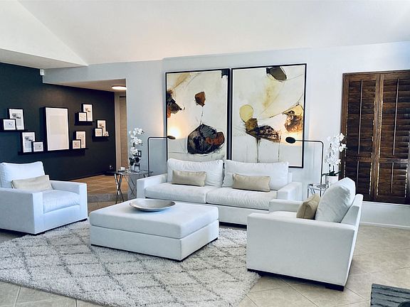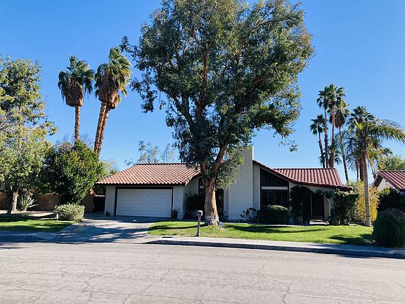 Feel like you're on vacation every day in this beautiful resort style, 4 bed, 2 bath, pool home. This home sits on huge lot in the highly sought after Sagewood community in Palm Desert! This home features many architectural details such as vaulted wood beam ceiling, clerestory windows, and a floor to ceiling masonry fireplace. The light bright kitchen has, Corian counters, painted wood cabinets, stainless appliances, and an updated marble backsplash. The interior and exterior have been freshly painted. Guest bathroom has been updated with a walk-in shower. All guest bedrooms are equipped with French double doors leading to the back yard for easy pool access. Entertain outdoors or relax and unwind in the large fruit tree lined backyard featuring pool, spa, pond with waterfall, mature landscaping and raised garden planter for your herb and vegetable garden. Location, location, location- Near all the great events, golf, shopping, spas, Eisenhower hospital and just a quick walk to Bristol Farms, Sherman's Deli, Papa Dans, Starbucks, Albertson's and many other shopping and eating establishments. Sagewood HOA amenities include access to heated community pool & spa, tennis courts and half basketball court for all to enjoy.