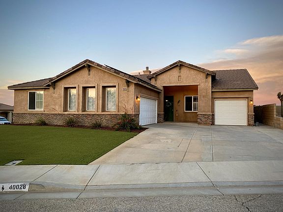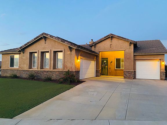 Gorgeous and well-maintained single-story on a quiet and friendly cul-de-sac, adjacent to pristine Joshua tree groves and hiking trails. Corner lot with very high-end artificial turf, front and back means green, year-round lawn with virtually no maintenance. Large kitchen with island and granite counter-tops. Enjoy parties and family barbecues year-round under a beautifully-built patio cover complete with ceiling fans, twinkling lights and flat screen tv. Home is spacious with 2 living rooms, formal dining room, fireplace and high ceilings. Facing west, this home gives you a beautiful view of sunrises and sunsets over the arid terrain. Two garages (one single and one double) provides shelter for 3 cars and a huge driveway for even more parking. Quiet neighborhood where kids and families can walk and ride bikes. Solar panels means low power bills. Excellent school district. Within walking distance of shopping and restaurants and bus routes.