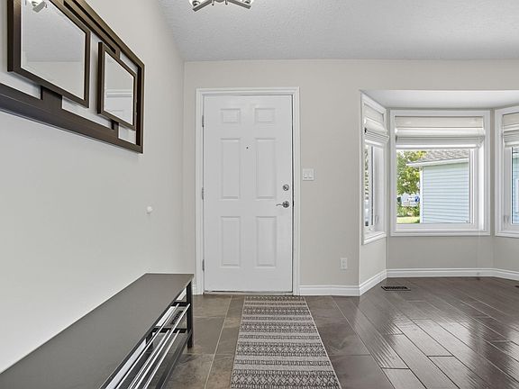 Situated on one of the largest lots, this home combines comfort, function, numerous upgrades, and a fantastic layout located steps from schools, parks and greenspace. Inside, the home has been freshly painted and features engineered hardwood flooring and new windows on the main level. The bright kitchen offers modern white cabinetry, granite overlay countertops, tile flooring, and opens onto a stunning two-tier, no-maintenance deck. Relax in the hot tub, gather around the fire pit, or enjoy the beautifully landscaped yard complete with RV storage, a shed, and maintenance-free fencing. Upstairs you’ll find two spacious bedrooms, including a primary suite with an ensuite with a luxurious steam shower. The lower level is bright with two large windows, a cozy gas fireplace, bedroom, full bath, laundry. And if that isn't enough space, the basement features a den/potential bedroom and rec room and there is an attached heated double garage. Located across from T.D. Baker, this is a true gem in Daly Grove.