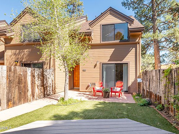 Brand new roof and skylight in this highly desirable end unit located in the popular neighborhood of Elk Run. Private yard and standalone one car garage with an additional parking spot right outside your gate. This unit is meticulously cared for with an updated kitchen. You'll love the cabinetry with under cabinet lighting, custom backsplash and composite granite sink. The bathrooms have been updated too! This clean move in ready mountain escape is ready for you! Enjoy the low maintenance yard with artificial turf and a raised composite deck. You have access to all the amenities of the Continental Country Club, 2 pools, tennis, pickle ball, weight room, mini golf. Nearby hiking trails and Snowbowl is less then 30 minutes away. Enjoy all Flagstaff has to offer with your dream getaway. Tankless hot water heater, carpets have been cleaned recently. Flooring is hand scraped hard wood in the living room. The cabinets in the garage and the freezer convey at no additional cost to the Buyer.
