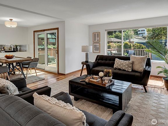Iconic Fauntlee neighborhood, above the Fauntleroy Ferry Dock, is where you will find this amazing neighborhood that this hip & classic 50's gem resides in. Friendly neighbors, pride in ownership up & down the sidewalks, and situated on the corner of the block this home shines brightly w/huge curb appeal! This gem has hardwood floors that were just recently refinished, great main floor flow from living room to kitchen, view filled west facing windows, huge deck looking over the Puget Sound & Olympic Mountains for the most amazing sunsets you will ever see, w/a beautiful low maintenance & fully fenced yard! House is accessible with minimal/no transitions, wide door frames & roll in showers. House to street sewer line just replaced in 2025