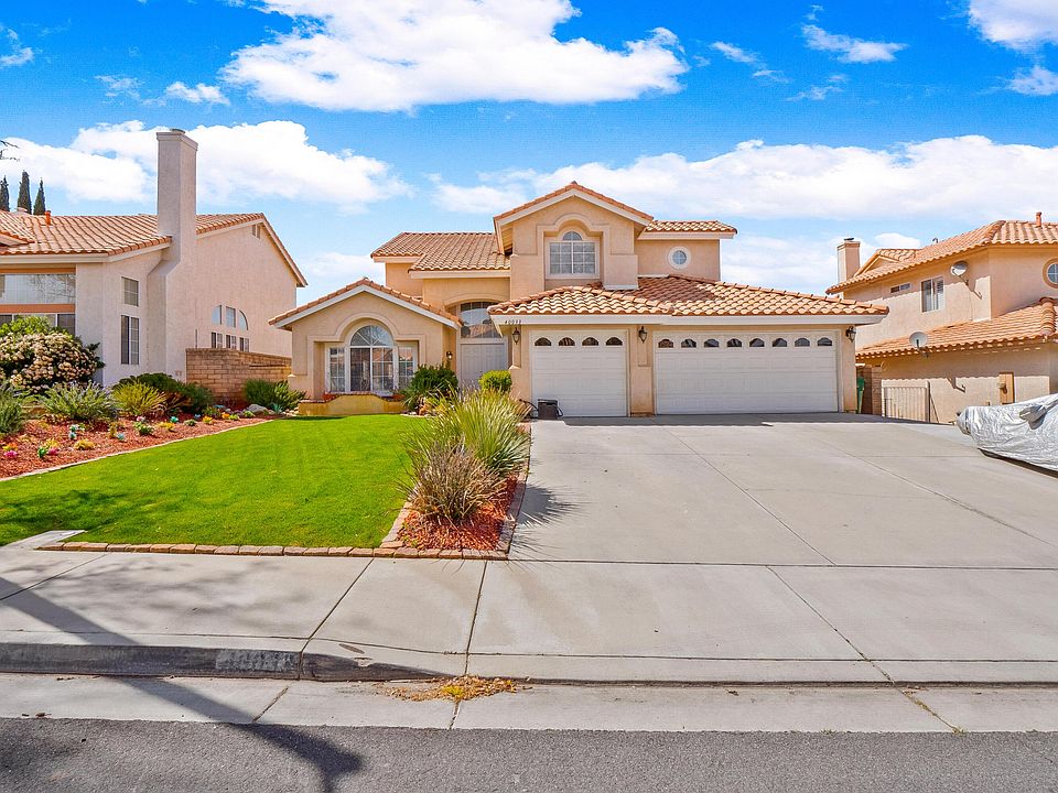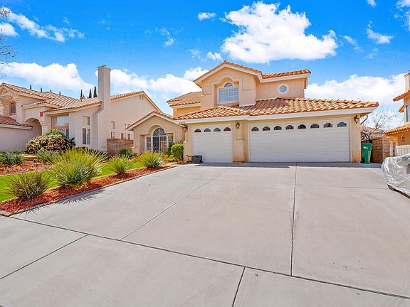 Stunning Home in the Heart of West Palmdale on a Quiet Cul de Sac! This two story home offers over 2,700 sq ft of living space with 4 bedrooms and 3 full bathrooms. There is a large downstairs bedroom with direct access to a full bathroom. There are upgrades throughout the entire home, including a fully renovated kitchen with new appliances and a double oven. The kitchen has a large walk in pantry and lots of custom cabinet space and soft close drawers. The primary bedroom has a gorgeous fireplace that can be enjoyed from both the bedroom and bathroom, plus a large walk in closet! The front and backyard has beautiful lush landscaping and a private patio perfect for summer nights. There is also a large three car garage with cabinet space. This home is magazine worthy! Call for your appointment today and watch the virtual tour online!