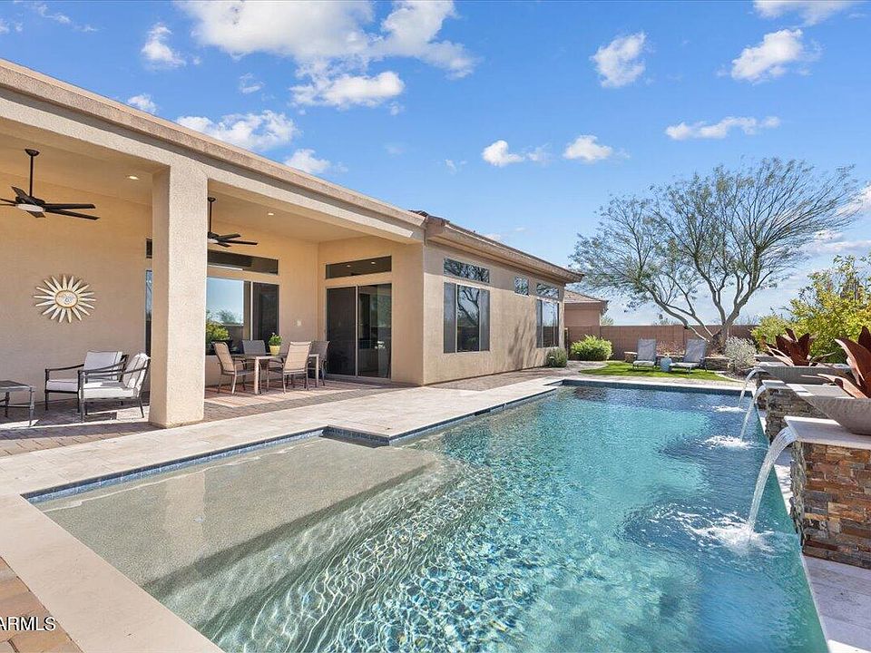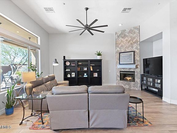 VIEW this Stunning Sonoma model today....you won't be disappointed! This Beautifully updated home features a chef's kitchen with 5 burner gas cooktop, stainless appliances, double ovens, slab granite counter with offsetting quartz top on island and butlers pantry. The new master bath features a free standing soaker tub and huge walk in shower both with marble surround, matching twin vanities with quartz tops. Enjoy your outdoor living space with a heated, self cleaning Shasta pool, expanded Travertine decking, covered patio and lush professional landscape design. BONUS-new HVAC system w/ 4 programable thermostats, LG washer & dryer included, security system, central vac, soft water & RO systems, new water heater, new wood plank porcelain flooring...and much more! Welcome to Anthem C.C.!