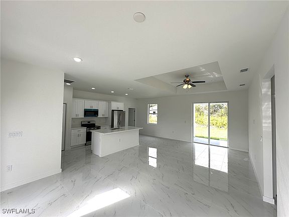 CO HAS BEEN ISSUED AND READY TO MOVE RIGHT IN! Your brand new home has a split floor plan with three bedrooms and two baths. The master bedroom has a large walk in closet, dual sinks, separate commode area and a large step in glass enclosed shower. Both guest bedrooms have large closets and share a full bath. Entertain family and guests in the large open kitchen with a nice island and plenty of prep area. The kitchen and bathrooms feature granite counters and plenty of cabinet and storage space as well as a pantry in the kitchen. Convenient indoor laundry area leading to your two car garage. You will enjoy the evenings watching the kids play in the backyard while sitting in the covered lanai. You will also enjoy the peace and quiet of being on a dead end street with the added convenience of being just a few blocks away from St Rd 82 allowing for easy access to anywhere you may want to travel. Do not miss out on this professionally built, wonderfully located and low priced brand new home for your family!