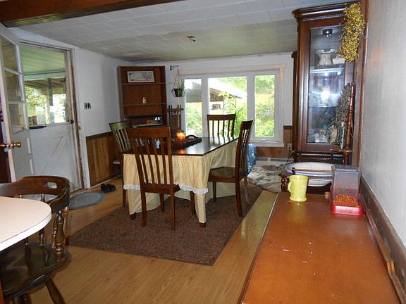 Ranch home on 5.43 acres, 2-3 bedrooms, eat-in kitchen, DR, LR, nice patio with deck. Screened in porch out front. Has heat pump w/central air. 200 amp service. Large garage.