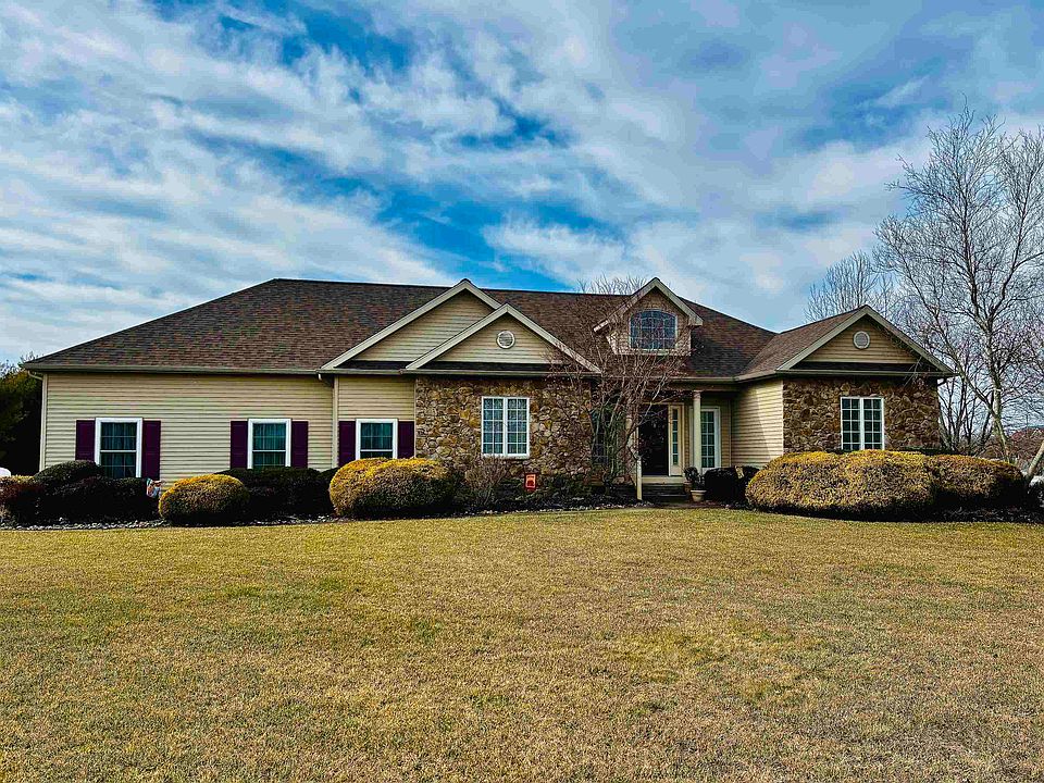 Spacious Rancher with Expansive Lot Nestled on a generous 45,002-square-foot lot, this stunning 3-bedroom, 2.5-bathroom rancher offers 2,280 square feet of single-level living space, designed for both comfort and style. Perfectly maintained and with your own personal touches move-in ready, this home features hardwood floors and wall to wall carpet throughout the main living areas, enhancing its cozy feel. The added four season room adjacent to the main living space is perfect for relaxing, reading or enjoying the view and access to the backyard and rear deck. The open-concept living space boasts soaring cathedral ceilings, creating an airy and inviting atmosphere. The fully appointed kitchen with breakfast nook and bar height peninsula offers plenty of seating for family and friends and flows seamlessly into the dining and living areas, making it an ideal space for entertaining near the double sided fireplace. The Primary suite is a true retreat, offering tray ceilings for added elegance, a spacious walk-in closet, and a luxurious ensuite with a soaker tub, stand-up shower, dual vanity and double sided fireplace for added ambiance. Enjoy the ease and convenience of single-floor living, with all three bedrooms and bathrooms located on the main floor. The full basement with 8-foot ceilings houses all of the home's mechanics, an additional refrigerator and freezer, and offers endless potential for additional living space and/or storage. With a new roof and attached 2-car garage, this home is both functional and stylish. The blacktop driveway adds to the curb appeal, while the expansive lot provides plenty of outdoor space for relaxation or recreation from the rear deck. Located in a desirable area, this home offers both privacy and convenience. Don’t miss your opportunity to own this exceptional property! This beautiful property has been meticulously maintained with yearly professional systems checks. New roof Oct. 2024, new Pur water softener 2023, HVAC and tankless hot water 3 years old, and new well 2021.