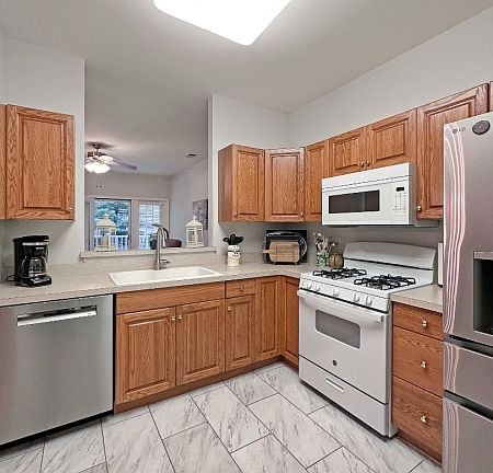 Welcome to your new home in the highly sought-after 55+ Brookfield Glen community! This thoughtfully updated residence offers comfortable, single-level living with newer kitchen appliances, an updated water heater, fresh carpeting, and updated windows. The spacious primary suite features a walk-in closet for plenty of storage space. Enjoy the simplicity of one-floor living with central A/C, no stairs, and elevator access to your assigned garage parking space and private storage unit. Relax on your private balcony?an ideal spot to enjoy your morning coffee or unwind in the evening. The monthly HOA fee makes life easy by covering landscaping, water, garbage, snow removal, and full access to all community amenities. Brookfield Glen provides an active and vibrant lifestyle with a heated outdoor pool, fitness centers, library, scenic walking paths, bocce ball, game and craft rooms, and planned events to enjoy with neighbors. With thoughtful updates, modern comforts, and resort-style amenities, this home combines convenience and leisure?perfect for your next chapter. Schedule a showing soon!
