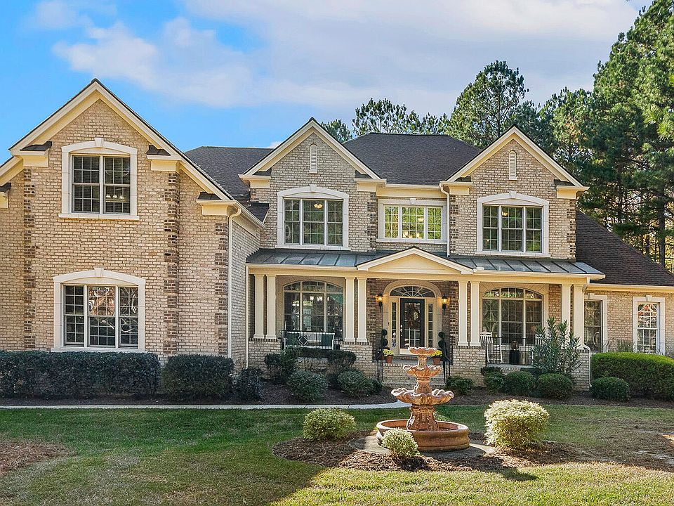 Experience refined estate living on 1.9 private acres in South Raleigh, just moments from Cary and Apex. This 6,977 sq ft custom built residence showcases exceptional craftsmanship, architectural elegance, and expansive living spaces designed for luxury, comfort, and versatility. A grand two-story foyer with a sweeping spiral staircase welcomes you into a home rich with detail. Throughout the main living areas, you'll find heavy custom moldings, including crown molding, trey ceilings, picture-frame molding, and chair rail, all adding sophistication and depth to every room. Elegant formal living and dining rooms set the stage for gatherings, while the impressive two-story family room with coffered ceiling creates a dramatic yet inviting central space. The gourmet kitchen features a Viking refrigerator, professional gas range with hood, abundant cabinetry, and an ideal layout for everyday living or entertaining. The first floor also includes a versatile bonus/office, a meditation room, utility room plus a private guest suite with full bath. Most of the first floor is hardwood flooring. Upstairs, the luxurious primary suite offers a relaxing sitting room, dressing area with three walk-in closets, and a spa-like bath complete with jetted tub, dual vanities, and walk-in shower. A private en-suite bedroom plus two additional bedrooms connected by a buddy bath complete the second level. The fully finished basement expands the lifestyle possibilities, offering a complete second kitchen, dining area, family room, a flexible bedroom/bonus room, full bath, and a dedicated movie theater. This is perfect for multigenerational living, guests, or private entertaining. With nearly two acres of privacy, a three-car garage, circular driveway, and exquisite architectural detailing throughout, this home stands out as a rare luxury opportunity in one of the Triangle's most desirable locations.