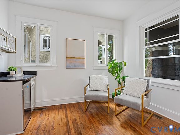 This beautifully renovated 3-bedroom, 2.5-bath home offers over 2,200 sq ft of stylish living space directly across from Forest Hill Park. The main level boasts newly refinished hardwood floors and a bright open-concept layout, featuring a spacious living area with a dry bar, a dedicated dining room, and a kitchen with gas cooking, soaring ceilings, and a cozy breakfast nook. A convenient powder room completes the first floor.