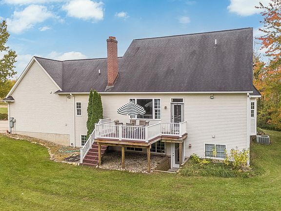 This terrific home has the open feeling, quality and attention to detail not often seen! Hardwood flooring, Living room with vaulted ceiling opens to the kitchen with cherry cabinetry and granite countertops. Love to entertain? This dining room can seat 10 comfortably! Main floor master, with soaking tub, and loads of closet space. Upstairs are 2 bedrooms, one with a unique ''hidden space''. Lower level walkout could be mother-in-law or guest quarters and offers a kitchen, living area with fireplace, office, bedroom and bath.. Let's talk pole barn! This one houses an office, restroom and the storage you would expect. 3.2 Acre Country location minutes from US-131 and Fun - Golfing, shopping, restaurants, fishing, kayaking, horseback riding and the casino!