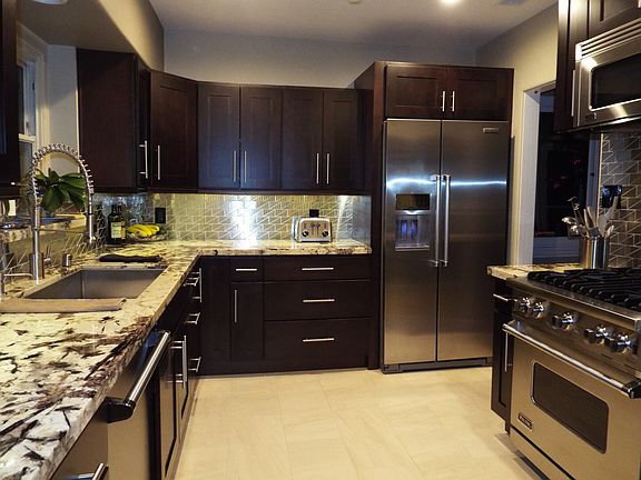 Totally Renovated Bixby Knolls Spanish home in the upscale Chateau Thierry area on a large lot is available for sale. This charming Spanish home has a top of the line Viking kitchen, custom granite counters, stainless steel back splash, Double Viking Convection Ovens, large stainless sink and Marazzi Italian Porcelain tile floors.  There is also a quaint breakfast room off the kitchen with built in china cabinet and a separate utility room with pantry and washer/dryer. The original hardwood floors are throughout, and have been refinished, and look brand new. The master suite has two walk-in closets and a new luxury master bath with dual vanities, huge dual headed shower, separate and private water closet, and Italian porcelain tile floors and walls. There are new heating and A/C units, large enough for a large addition, new plumbing, new electrical, new floor moldings, new paint, and renovated guest bath. The Living Room has beautiful vaulted beamed ceilings and a charming Gas/Wood Fireplace, and the formal dining room has beamed ceilings as well. The large professionally landscaped rear yard provides complete privacy and has a large patio for entertaining, with lots of room for a pool.  This is truly turnkey, with charm, and with all the upscale modern features the discerning buyer is searching for.