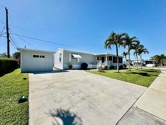 Nestled within the vibrant 55+ Tropical Breeze Estates community, this meticulously maintained 2005 manufactured home offers a harmonious blend of modern living and comfort. The residence features a spacious open floor plan, encompassing a bright kitchen, dining area, and living room, all illuminated by impact windows Skylight that invite abundant natural light throughout the open common area. A recently added Florida room extends the living space, providing a serene spot to relax and entertain. The home comes fully furnished and turnkey displaying a contemporary decor, ensuring a seamless move-in experience.Beyond the home's inviting interior, Tropical Breeze Estates enriches residents' lifestyles with an array of amenities. The community boasts a clubhouse, heated swimming pool, shuffleboard courts, and well-maintained sidewalks, enhancing the overall living experience. Residents can also enjoy organized activities such as bingo, classes, dinners, dances, and water aerobics, fostering a strong sense of community.