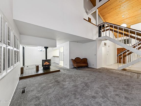 Soaring ceilings, 2 large bedrooms upstairs, primary has a walk out balcony for quiet nights and ensuite bath, the other is private and just as large. Convenient in town location near all the entertainment, and the amenities are spectacular. Secure RV/Boat storage is available and very reasonable. Nice 2 car garage with direct access to the kitchen/Pantry make living easy. Larger shady yard and deck, for outdoor enjoyment. Newer SS appliances, newer carpet and paint, and the wood tongue and groove ceiling, make you feel GROOVY!