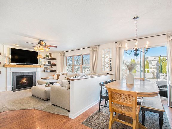 Homes like this one do not come on the market very often. This updated 4 bedroom, 2.5 bath home is truly move-in ready and offers an inviting layout perfect for everyday living and entertaining. Enjoy relaxing on the covered front porch before stepping inside to a bright, open main level. The front living room flows into a flexible space currently used as a playroom but ideal for a dining room or home office. The kitchen features gorgeous cabinetry with abundant storage, a butcher block island, and stainless steel appliances, opening seamlessly into the family room with a tiled fireplace. A convenient main-level laundry room sits just off the garage entry. Upstairs, you’ll find four spacious bedrooms and two full baths, including a generous primary suite with vaulted ceilings, dual closets, and a private ensuite bath. Over 1,000 square feet in the basement that can easily be finished or used for additional storage. Out back, enjoy a fully fenced yard with a large patio - perfect for gatherings - plus a storage shed and trampoline included. Homes in this neighborhood don’t stay on the market for long - be sure to check it out to see all that it has to offer.