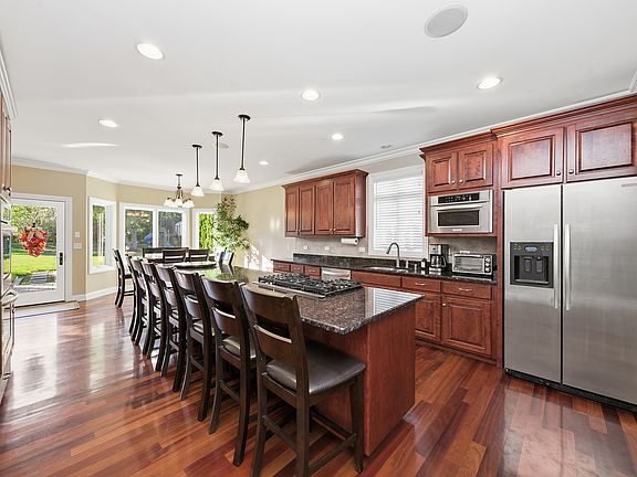 Welcome home to your stunning custom-built luxury retreat in North Downers Grove! Step inside the grand two-story foyer with its elegant staircase and gorgeous cherry wood floors flowing throughout the main level. Designed for entertaining, the formal dining and living rooms connect seamlessly. The gourmet kitchen is a chef's dream-custom 42" cherry cabinetry, granite counters, stainless appliances, and an expansive island perfect for family gatherings. The inviting family room features 11-ft coffered ceilings, a cozy fireplace, and large windows overlooking the park-like backyard with paver brick patio, built-in fire pit, and mature trees. Upstairs you'll find 5 spacious bedrooms and 5 baths, including a luxurious primary suite with dual closets and a spa-inspired en suite featuring a jacuzzi tub. Walk to Belle Aire Elementary, near Dorihoffer Park, shopping, dining, Good Sam & Downtown Downers Grove. Easy access to I-88 & I-355. Your piece of paradise awaits!
