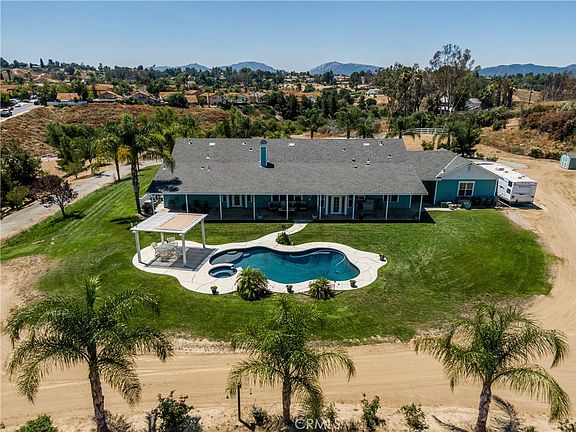 Check out this highly desirable property in the heart of Temecula available for the first time on market! Looking for a home with land, privacy, a massive hobbyist workshop/garage that is actually close to town? Look no further! This expansive and private 5 acre custom estate home is located just 5 minutes from both downtown Temecula’s shopping areas AND our world famous wine region. This custom ranch style home features a spacious open floor plan with gourmet kitchen featuring 48” Thermador range. The kitchen and breakfast nook area overlooks a sparkling pool/spa and wonderful views of the Temecula Valley. This property has a massive 60’x40’ (2400 sq. ft.) hobbyist style workshop garage perfect for auto restoration, machine shops, wood/metal working shops or for possible use for your business. The workshop features a bathroom, overhead storage, paint booth/cleanroom, high ceilings, 400 AMP service panel with 3 220V outlets for welding equipment, plumbing for air compressor lines and dual high clearance roll-up doors. The car lift and compressor are included with the sale! Additional RV parking is available on both the side of the workshop and side of the garage attached to the home. Perhaps the most unique feature of this home is the fact that you own your own water rights…practically unheard of in Temecula. The owner installed a well which provides enough water to supply both the home and landscaping needs of this special property which will save you hundreds of dollars per month! Hurry, this one-of-a-kind property won’t last!